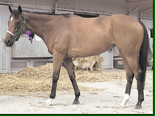 いわゆる寸胴型。横幅があり、肩、胸前、上腕部周辺はぶ厚い筋肉に覆われている。当然のごとく腹袋は大きいし、幅の広い股(もも)を持つ臀部は、腰もふくらはぎもパンパンに張り詰めている。レース当日にイレ込むことはない性格。