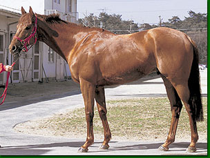 | 前走時でもピークに近い状態に映ったが、ここにきて更に充実している感じ。筋肉が盛り上がり、幅のあるガッチリとした造りながら、全身が丸みに富んでいる。張りがいい証拠である。項(うなじ)、尾端まで何ともいえぬスロープ。 |
