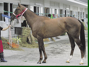 | 再び充実期を迎えているようだ。牝馬としては大型の500キロ前後の馬格を誇るが、完璧に近い実の入りで丸み十分、筋肉も最高の張り。皮膚が極限まで薄く張り詰め、体の輪郭がくっきりと浮き出ている。デビュー以来、最高かも知れぬ。 |
