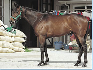 4日に坂路で放馬してカラ馬の状態で48秒6。ただ、すぐに掴まっただけに、いい1週前追い切りになったと解釈したい。兄リンカーンに比べると、やや寸が詰まって脚も短め。カッとした気性からも、距離はこれくらいまでがベターか。