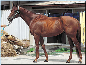いつものように上腕から肩にかけての筋肉の盛り上がりが素晴らしい。四肢にも古馬の牡馬らしい力強さが漲っているし、毛ヅヤも最近で一番いい。顔つきが凛々しくアバラもうっすら見え、すぐにでもレースができそう。文句ないデキ。