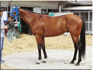 腹袋があって少しポテッとして映るがこれは体形的なものもあるのでは。アバラはクッキリと浮き上がっているし、皮膚の薄さも十分。馬体はキッチリできていると見る。胴長で、繋もなかなか柔軟そう。芝路線で本格化した点にも頷ける。