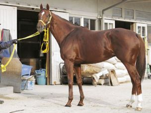 馬体がパンパンに張っているし、この時季にしては毛ヅヤも良好。前2走はデビュー以来、最高の馬体重となったが、太目感はまったく感じられない。筋肉質で非常に逞しく、繋も立ち気味。いかにもダートの短距離が合っていそうな馬。