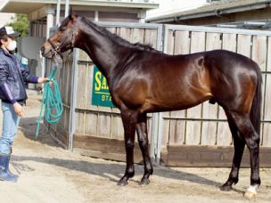 写真は皐月賞の4日後。そのせいかも知れないが、体はスッキリと見せて、引き締まってきたように映る。動きには硬さもなく、疲れなどは一切感じられない。好調持続と見て良さそうだ。