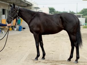 時季的なものもあるだろうが、腹目は幾らかでもスッキリとしてきて、前々走の写真よりは毛ヅヤがウンと良くなってきた。トモにはしっかりと筋肉がついて、成長も見て取れる。