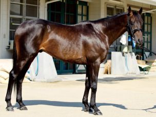当欄初登場。牡馬にしては後躯がやや薄いが、春より背が伸びたせいもあろう。落ち着いた馬で仕上げやすく、久々とは思えぬ肌艶だ。繋と腿骨が長く、これが大トビで安定した走りの源。