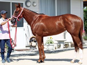 ダートの新馬戦を圧勝。当時より馬体がフックラした。前躯は肩甲骨が立ち、頭が高く完全なスプリンター型だが、後躯は飛管が長く、カモシカのよう。芝にも十分対応可能な横姿だ。