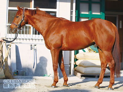 短距離馬だった父に似ているので、距離がどうかと思われたが、持ち前の根性とパワーでこなした。太く見せるのは体形で、素晴らしい筋肉の盛り上がりである。肌艶の良さも印象的。