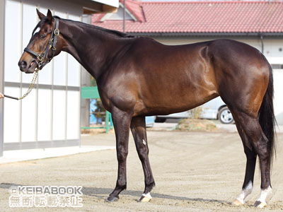 概ね写真は頭が高いが、ひと回り大きくなり、後肢が伸びた。その分、重心の低い横姿に。厳冬期の牝馬でも冬毛が出ず磨き込んだ体。フックラした腹回りと中間の豪快な動きも好調を物語る。