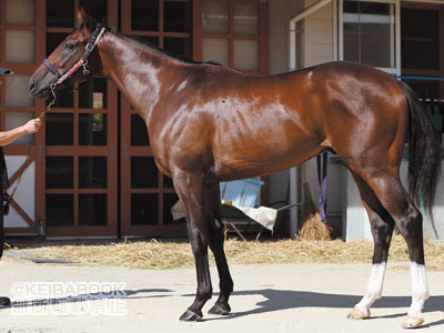 造りの大きいトモが特徴的で、それに見合った筋肉量。皮下に若干の余裕はあるが、既にキ甲が抜け始めて今の時期の2歳としては完成度が高い。体形のみの判断ではマイル前後が適している。