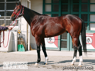 四肢がスラッとしていて500キロ前後あるとは思えぬ素軽さ。前日にCWでハードに追われたこともあり、仕上がりはかなり進んでいる様子。胴は詰まり気味で気持ち腰高。距離短縮はプラス。