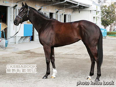 一見、480キロもあるようには見えないが、胸前の筋肉は発達して、全体的にも肉づきがいい。この時期の3歳馬にしては完成度が高いといえるのだろう。引き締まった馬体で毛ヅヤもいい。
