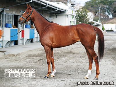 ハーツクライ×キングマンボの配合は2年前の2着馬ディアマイダーリンと同じ。ただ、こちらは脚が長くて、スラッとした立ち姿。父の影響はより強いかも。太目感なく仕上がりは良好。