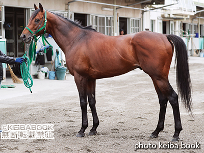高松宮記念の写真に比べると体の線がハッキリ。暖かくなってきたこともあるのだろうが、より研ぎ澄まされたような印象を受ける。ピカピカの毛ヅヤで力強さも十分。デキは文句なし。