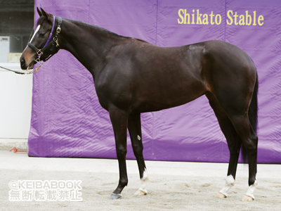 全体に丸みがあって、胴の詰まった体形。露骨に母方の影響は感じさせないが、数字以上に厚みがあるのはアンブライドルズソングのせいかも。冬場の牝馬とは思えないほど毛ヅヤがいい。